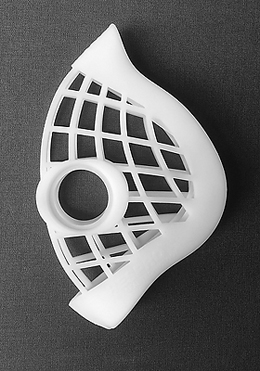 Эта пластина изготовлена из листового прозрачного полиэтилена толщиной 0,5 мм. Она одевается на клапана с внешней стороны фильтра (оказываясь таким образом между фильтром и самой неопреновой маской) и заставляет фильтр все время держаться в «растопыренном» состоянии. В результате увеличивается рабочая площадь фильтра и, следовательно, его пропускная способность.